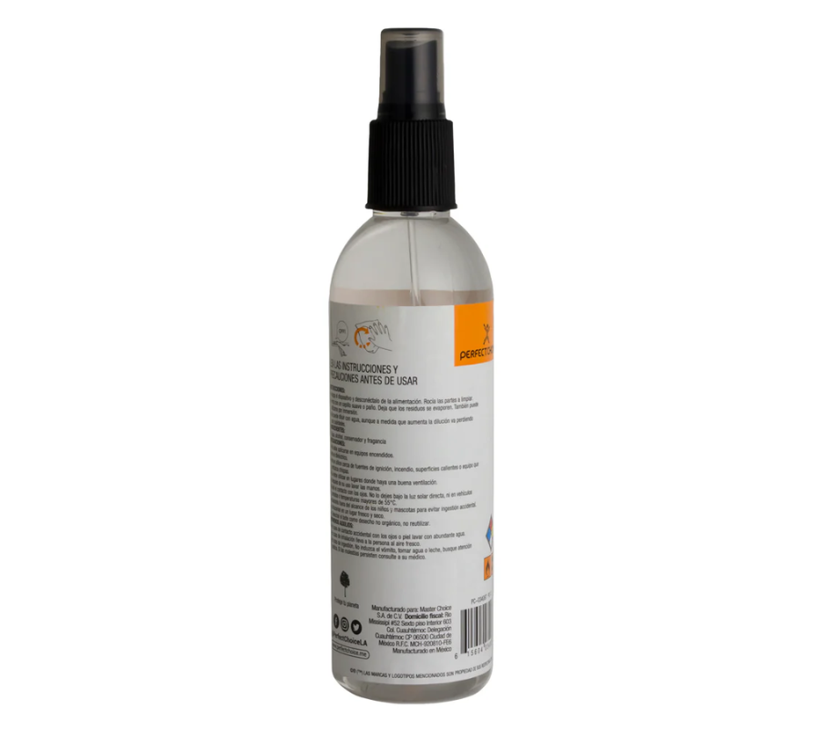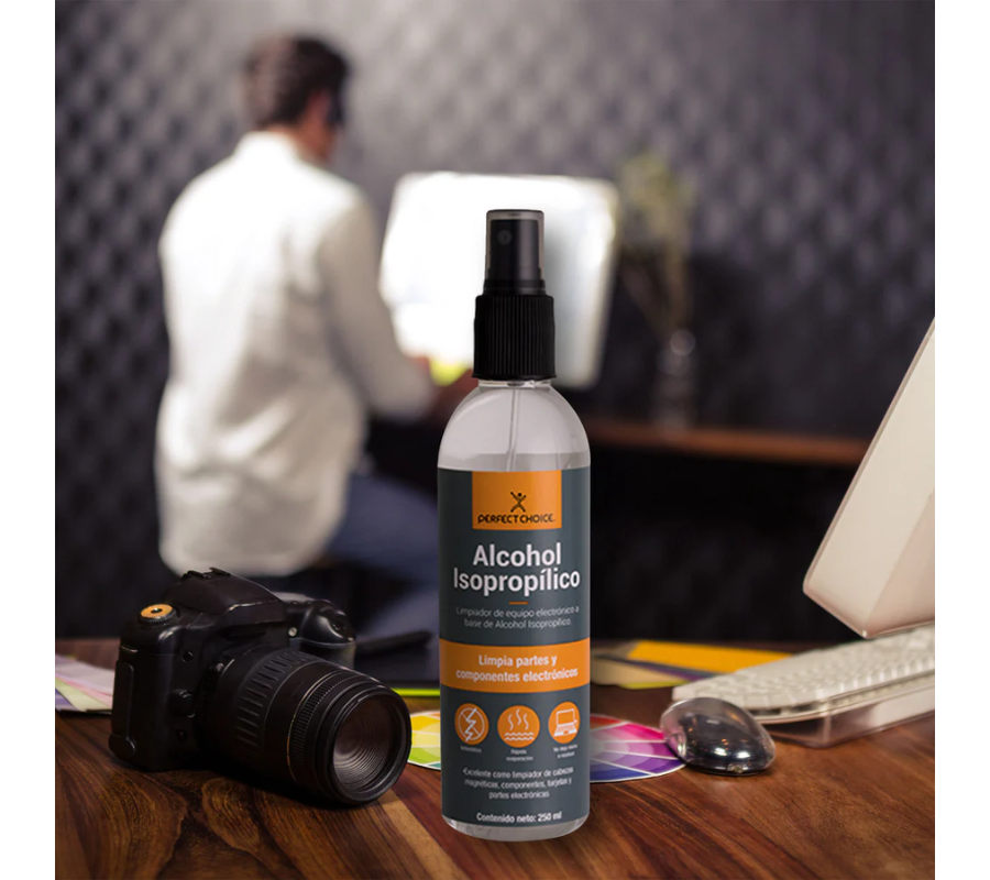 El Alcohol Isopropílico de la marca Perfect Choice es un producto químico utilizado comúnmente como desinfectante y limpiador en diversos ámbitos, tales como el hogar, la industria electrónica y médica. Este alcohol se presenta en una botella con capacidad para 250 ml y cuenta con un dispensador tipo vaporizador que permite su aplicación de manera fácil y precisa.