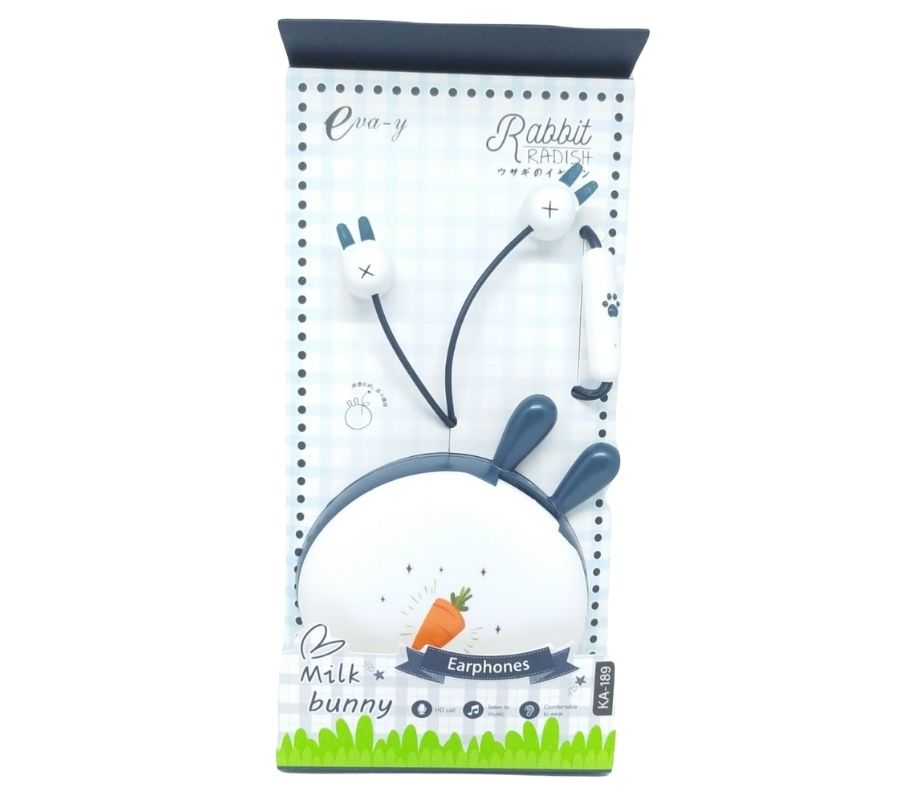Audifono Alámbrico In-Ear EVA-Y KA-189 MILK BUNNY, Con Estuche Rigido, 3.5mm, Blanco/Azul