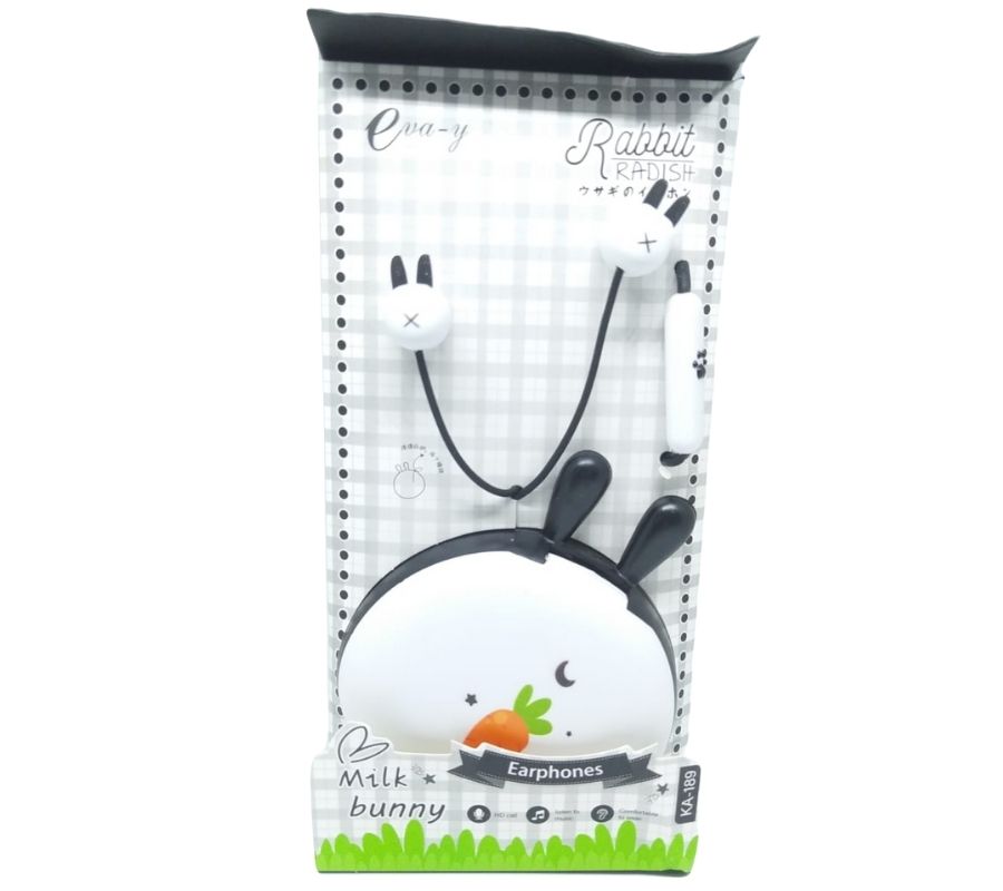 Audifono Alámbrico In-Ear EVA-Y KA-189 MILK BUNNY, Con Estuche Rigido, 3.5mm, Blanco/Negro