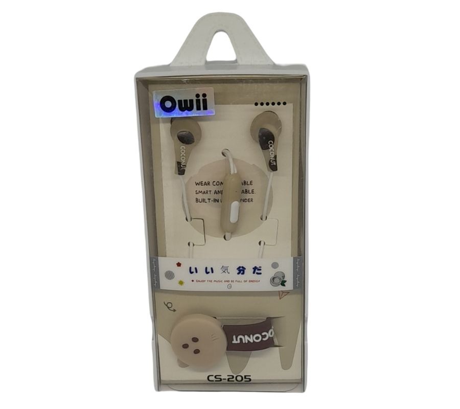 Audifono Alámbrico In-Ear OWII CS-205 COCONOUT con Sujeta Cable, Mic, 3.5mm, Café