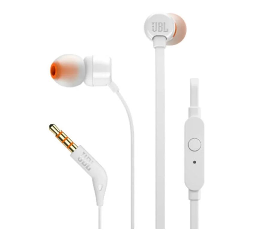 Audífonos JBL Tune 110 Gracias a los Audífonos JBL Tune 110 obtén un sonido impecable y con precisión superior para una experiencia inmersiva a donde vayas. Están equipados con 2 drivers de 9 mm intraudivos, para ofrecerte una acústica mejorada en cada oído. Su tecnología JBL Pure Bass, te brinda mayor profundidad en los graves, sin sacrificar el equilibrio en tus pistas. Gracias a su cable plano evitarás enredos al llevarlos contigo, maximizando su durabilidad. Cuenta con conector de 3.5 mm en ángulo, para que los puedas usar sin problemas en cualquier dispositivo. Su micrófono incorporado al cable te permite activar su función manos libres y charlar de manera cómoda con tus contactos. El increíble diseño color blanco con naranja, construcción ligera de su estructura y gomas suaves de silicona están pensadas en darte una experiencia auditiva cómoda, a donde vayas. “La legendaria calidad de sonido que esperas de JBL.”