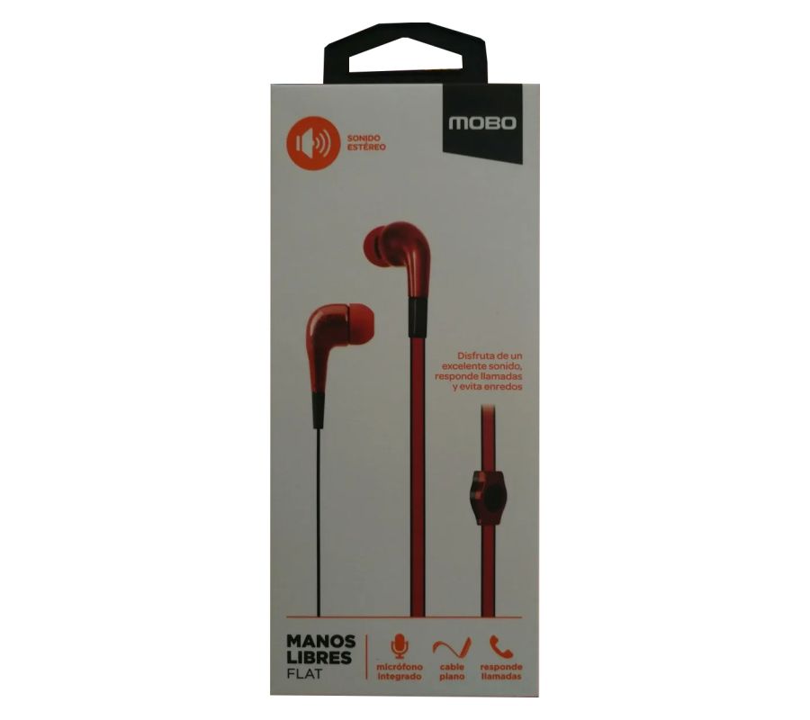 Audifono Alámbrico MOBO Flat Manos Libres Rojo