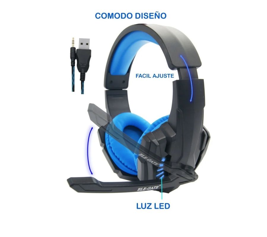 Audifono Diadema Alámbrica Gaming Headset ELE-GATE DMXZ4 USB, Negro/Azul