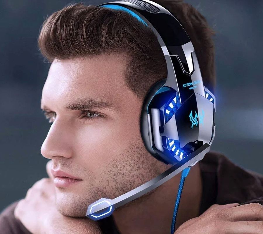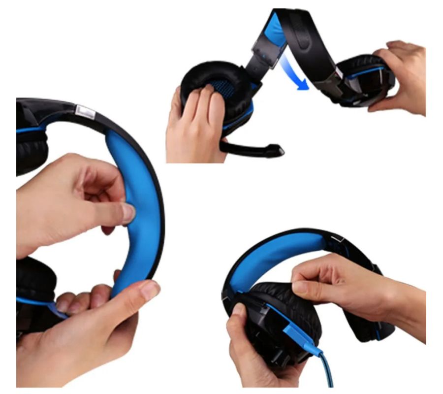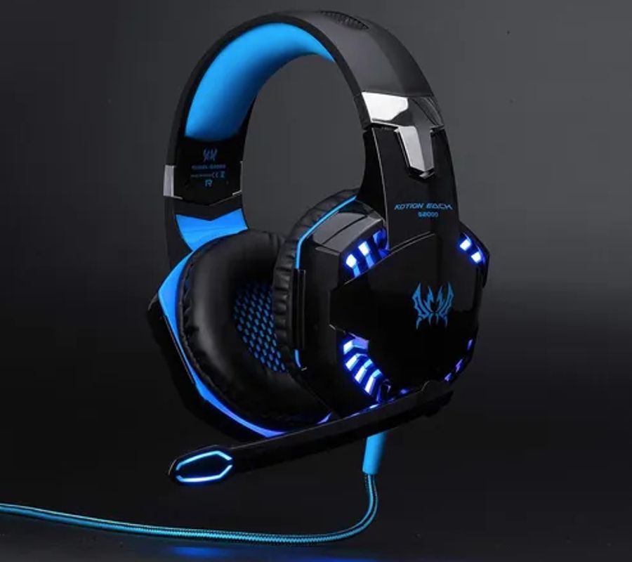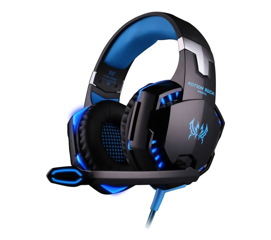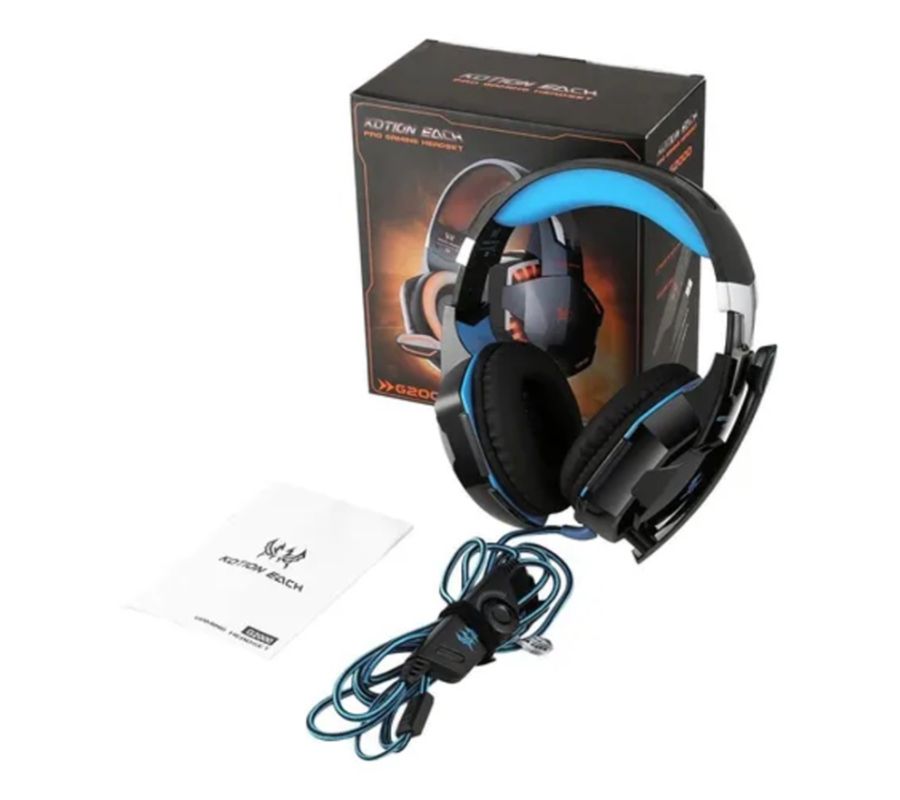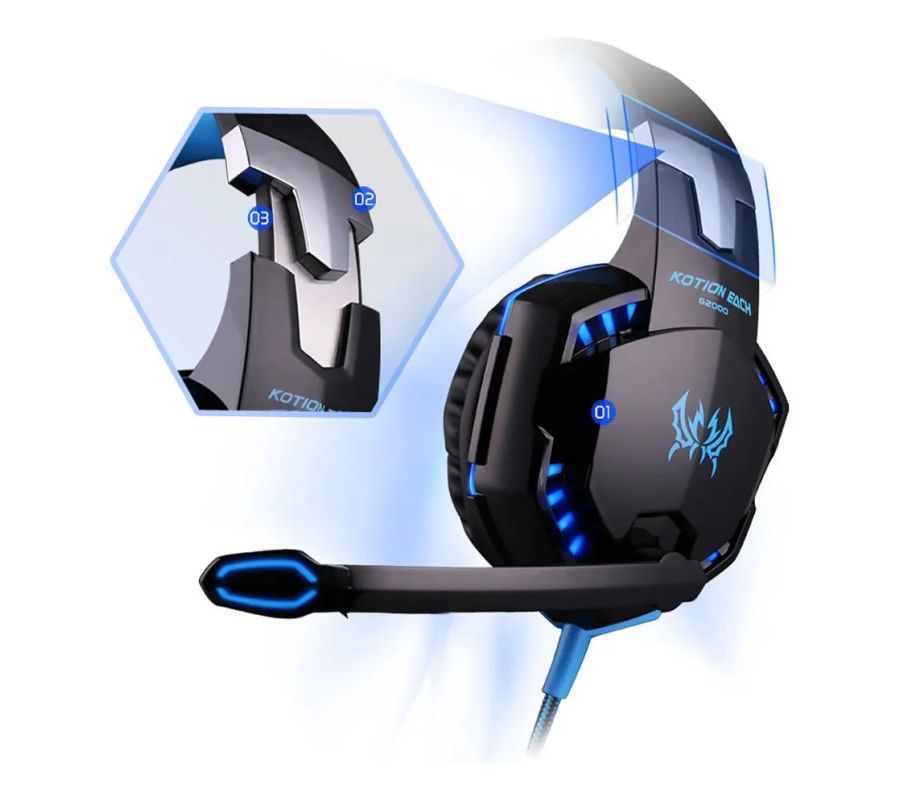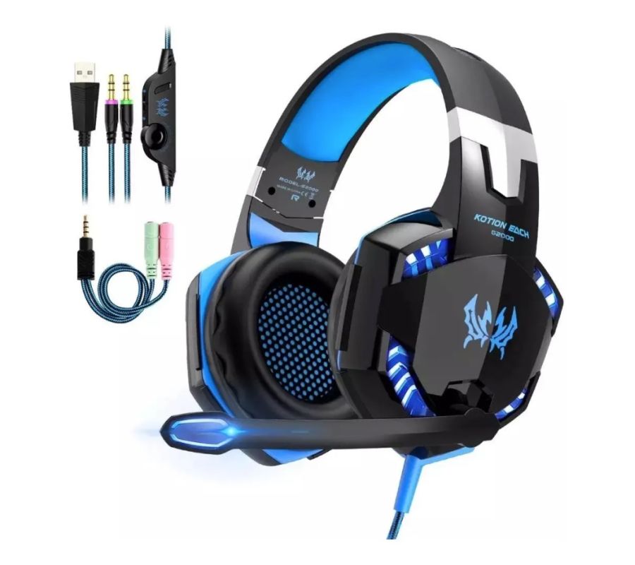 Audifono Diadema Alámbrica Pro Gaming Headset KOTION G2000 Luz Led Azul 3.5mm, Negro/Azul