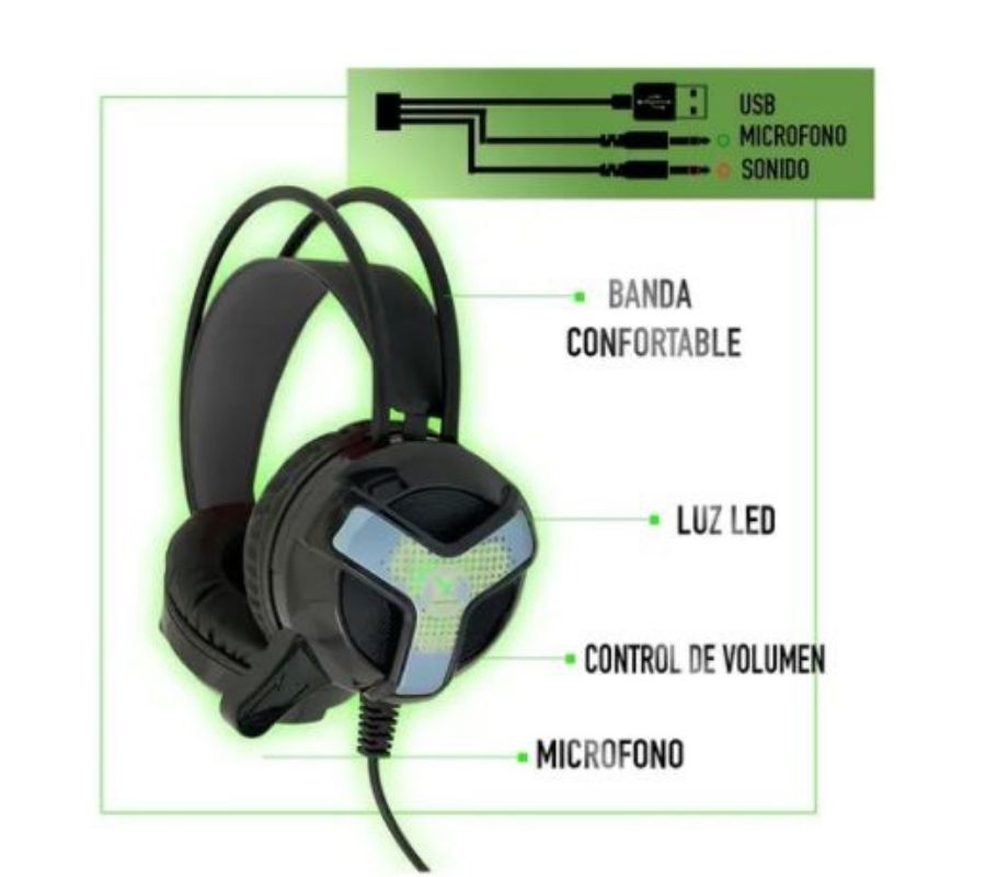 Audifono Diadema Alámbrica Profesional Gaming EVA-Y CERBERUS GH31, Game Headset, 3.5mm Negro
