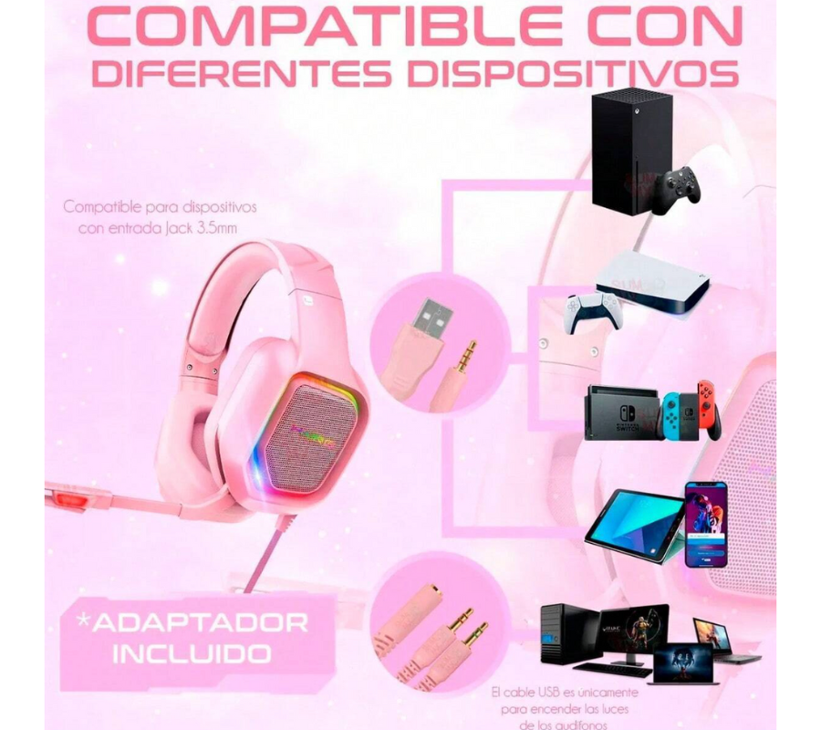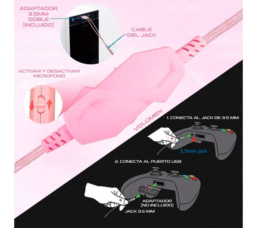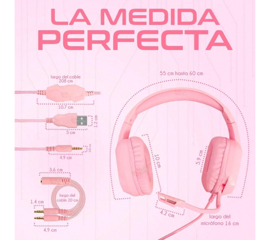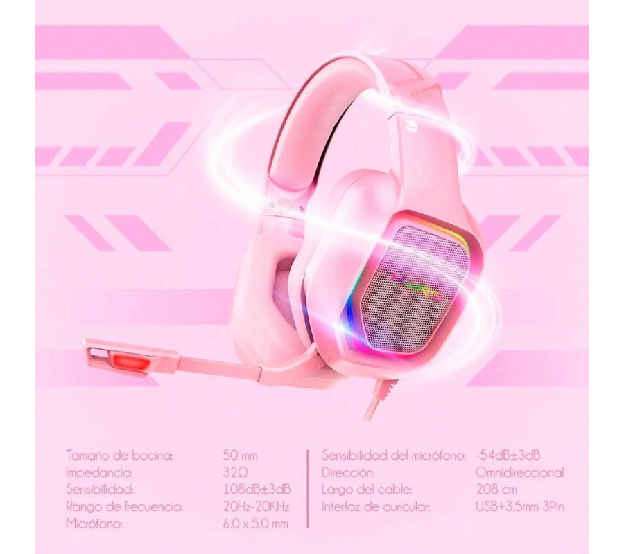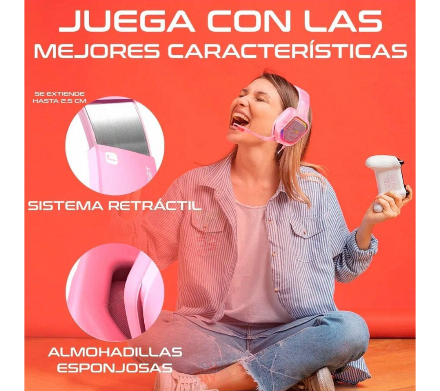 Sumérgete en la experiencia definitiva de juego con nuestros audífonos gamer. Domina el juego con estilo gracias a sus deslumbrantes luces LED. Escucha cada detalle y sumérgete en el sonido envolvente mientras conquistas nuevos mundos. ¿Estás listo para llevar tu juego al siguiente nivel?