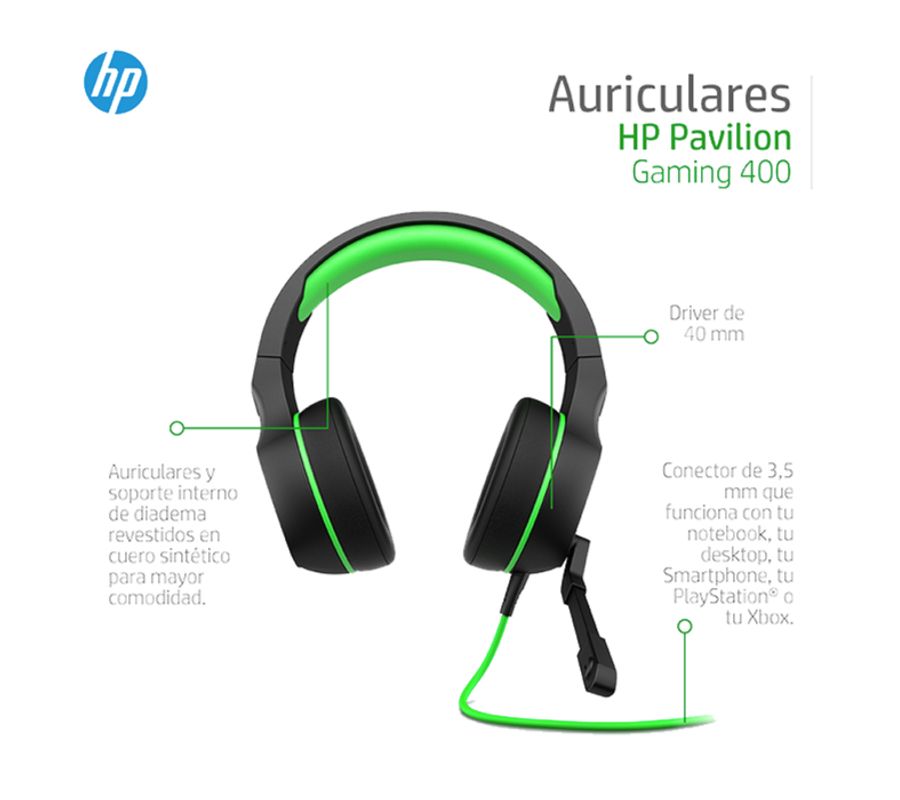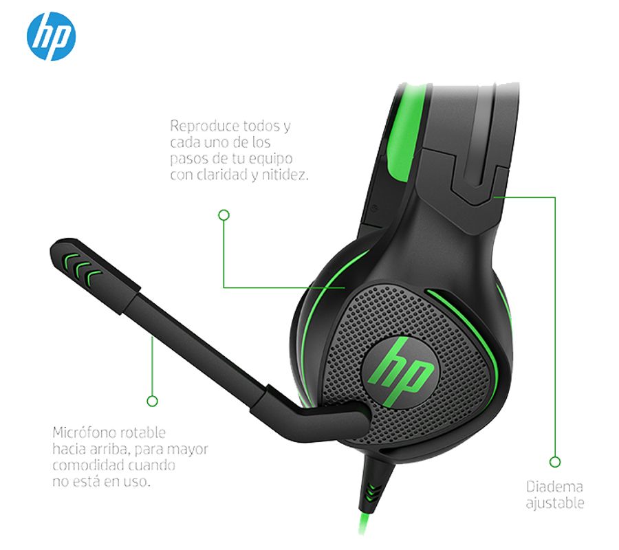 Audifono Diadema Gaming HP HEADSET 400 PAVILION Negro/Verde