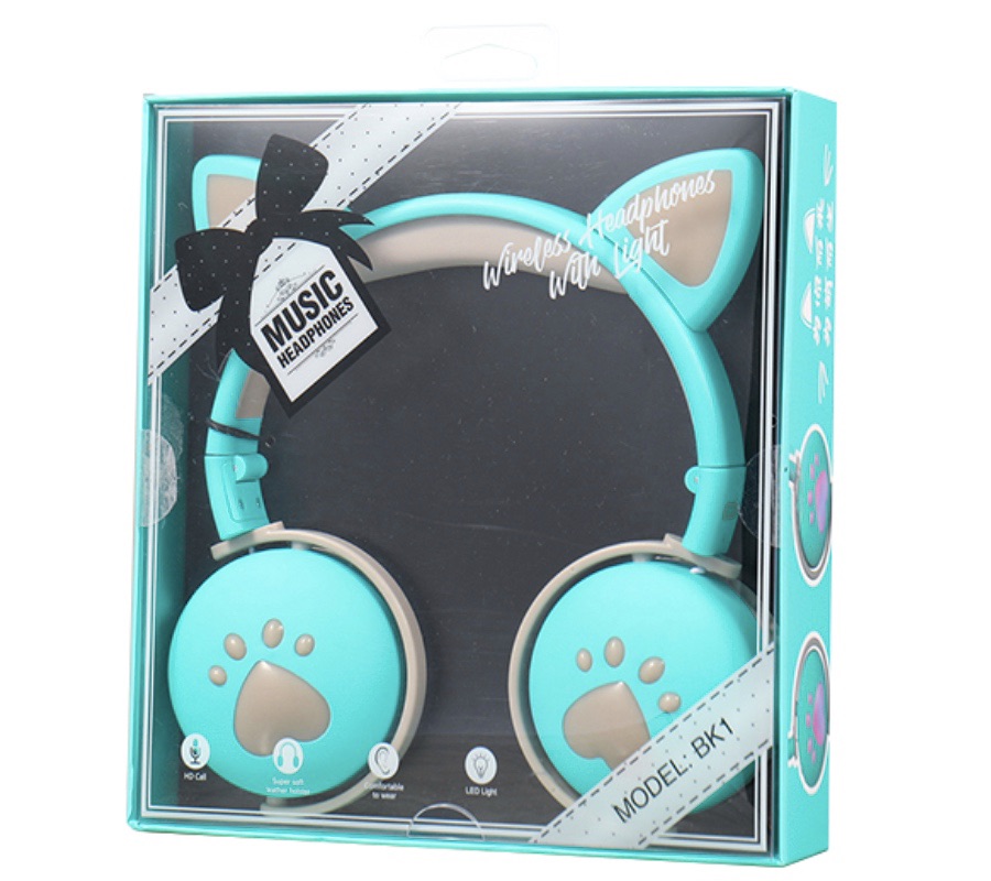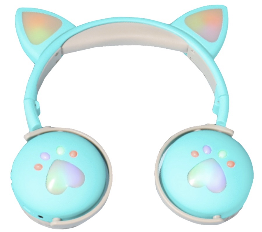 Audifono Diadema Inalámbrica EVA-Y BK1 Bluetooth, Orejas de Gato Menta/Gris