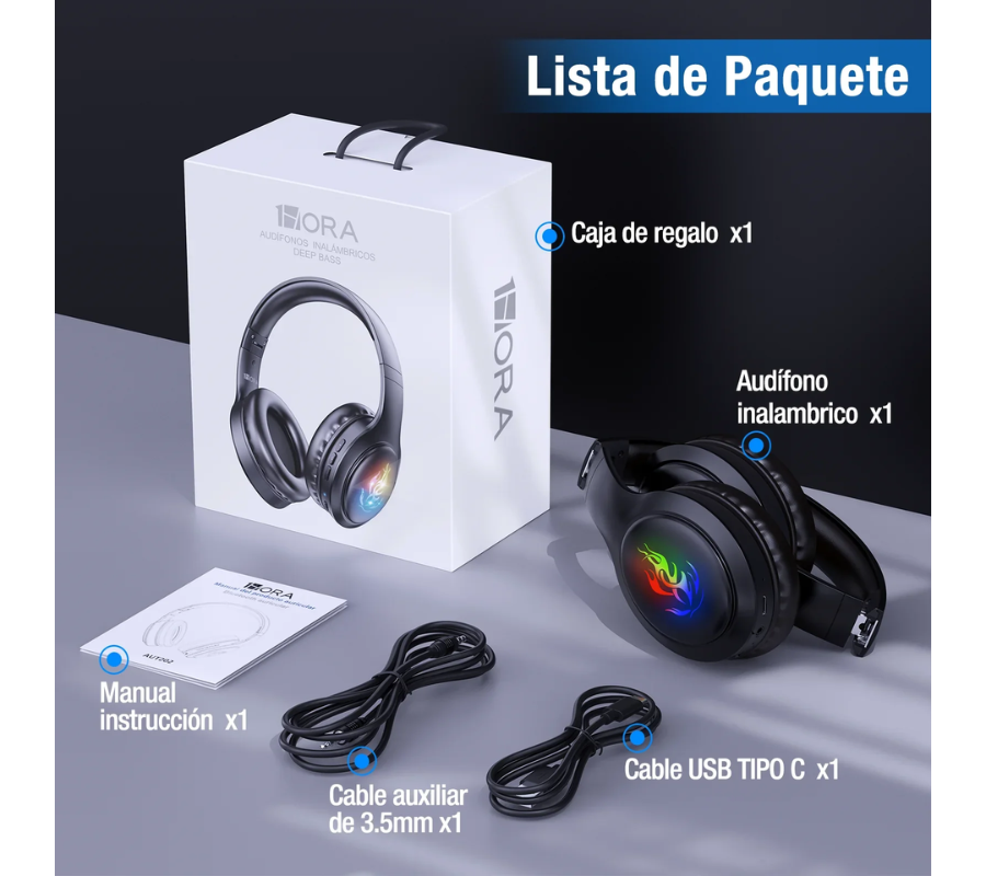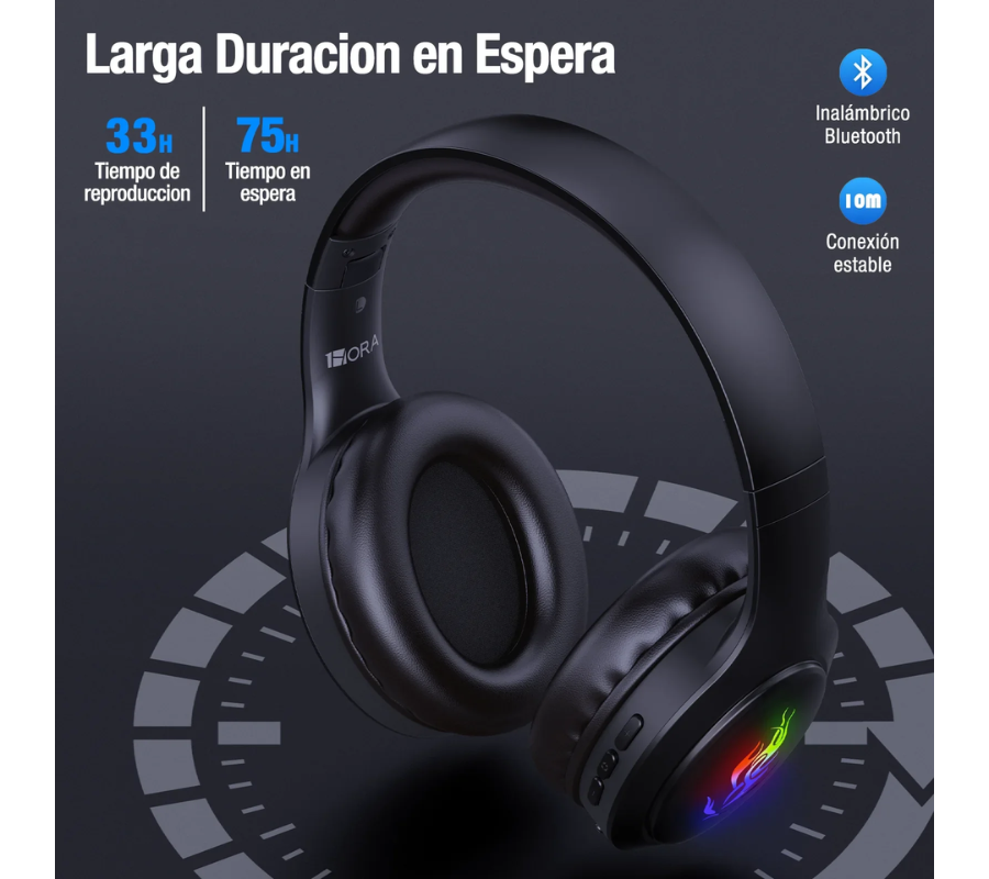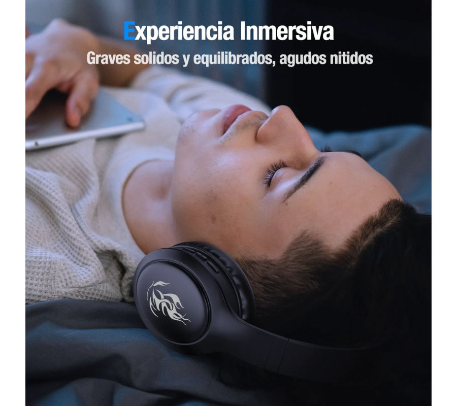 Audifono Inalámbrico Diadema 1HORA AUT202, Bluetooth 33H, Deep Bass, Negro
