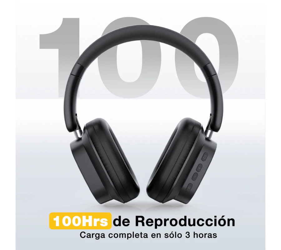 Audifono Inalámbrico Diadema 1HORA AUT250, Bluetooth 5.3, 100H, Deep Bass, Negro