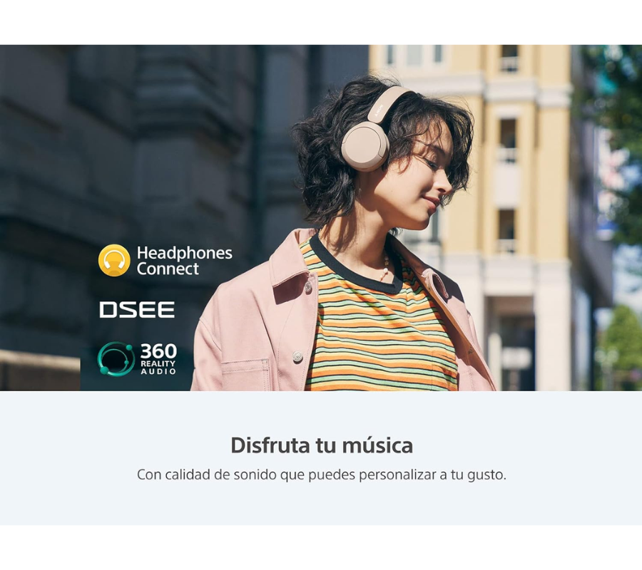 - El Motor de Mejora de Sonido Digital (DSEE) restaura tu música con altas frecuencias y disminuye gradualmente el sonido para un rendimiento más auténtico. Con la configuración de ecualizador en la aplicación Sony Headphones Connect, incluso puedes ajustar el sonido a tu propio gusto y crear una experiencia auditiva individual.