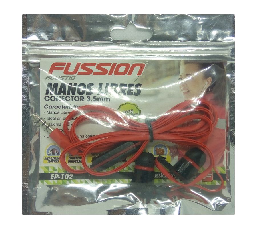 Audifonos Alámbricos FUSSION EP-102, 3.5mm con Micrófono, Rojo/Negro