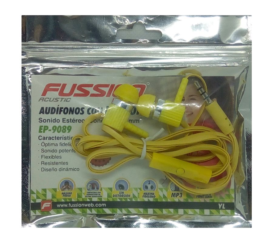 Audifonos Alámbricos FUSSION EP-9089, 3.5mm con Micrófono, Amarillo/Plata