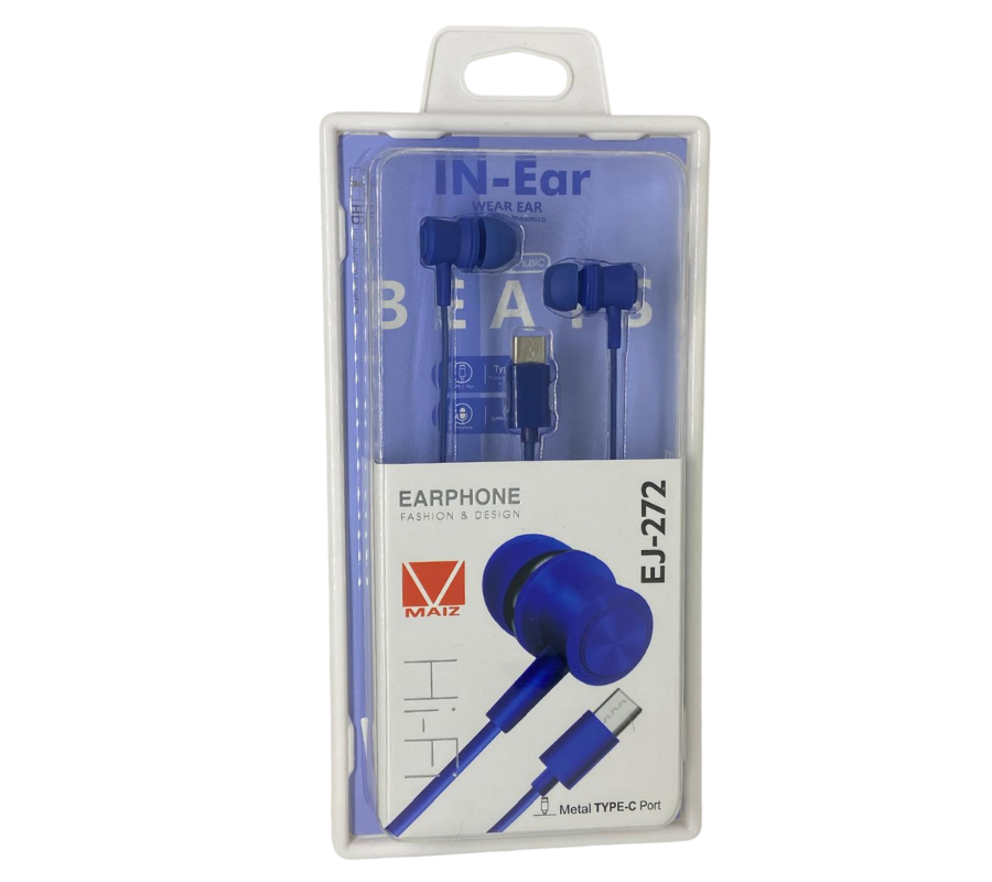 Audifonos In-Ear Alámbricos MAIZ EJ-272 EARPHONE FASHION & DESIGN, TIPO C, Mic, Azul