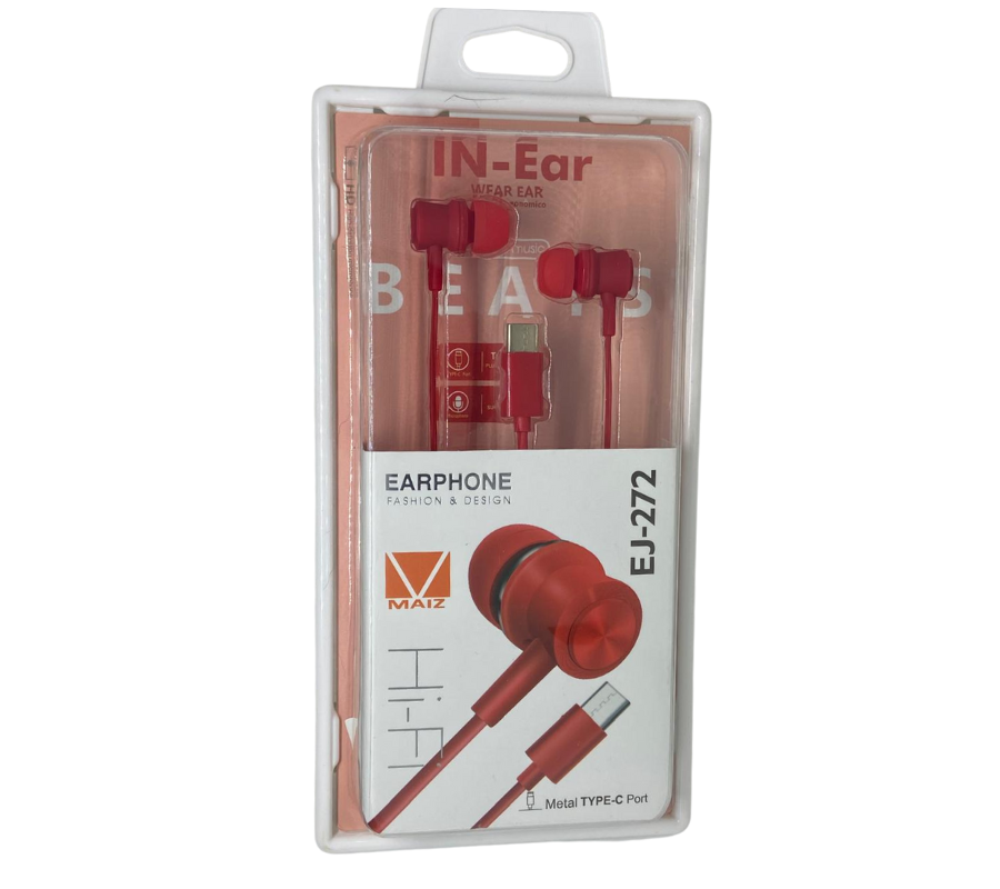 Audifonos In-Ear Alámbricos MAIZ EJ-272 EARPHONE FASHION & DESIGN, TIPO C, Mic, Rojo