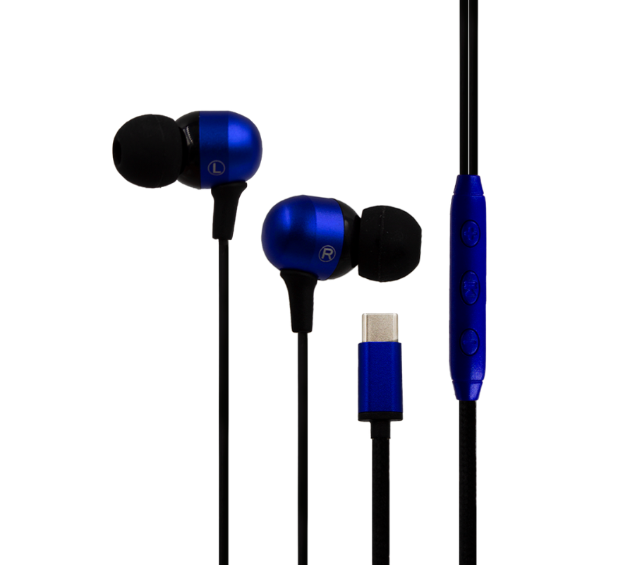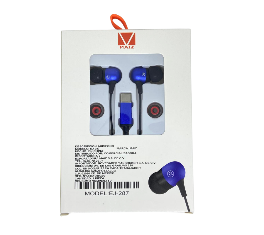 Audifonos In-Ear Alámbricos MAIZ EJ-287 STEREO EARPHONE, TIPO C, Mic, Azul/Negro