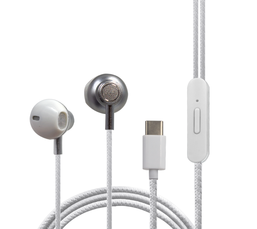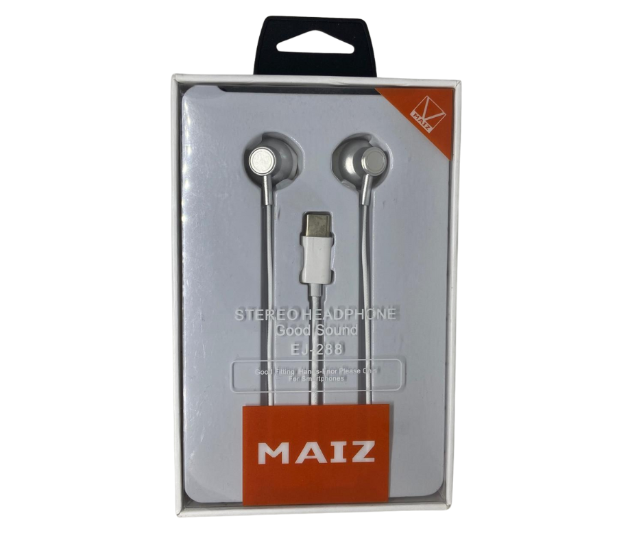 Audifonos In-Ear Alámbricos MAIZ EJ-288 STEREO HEADPHONE, TIPO C, Mic, Gris/Blanco