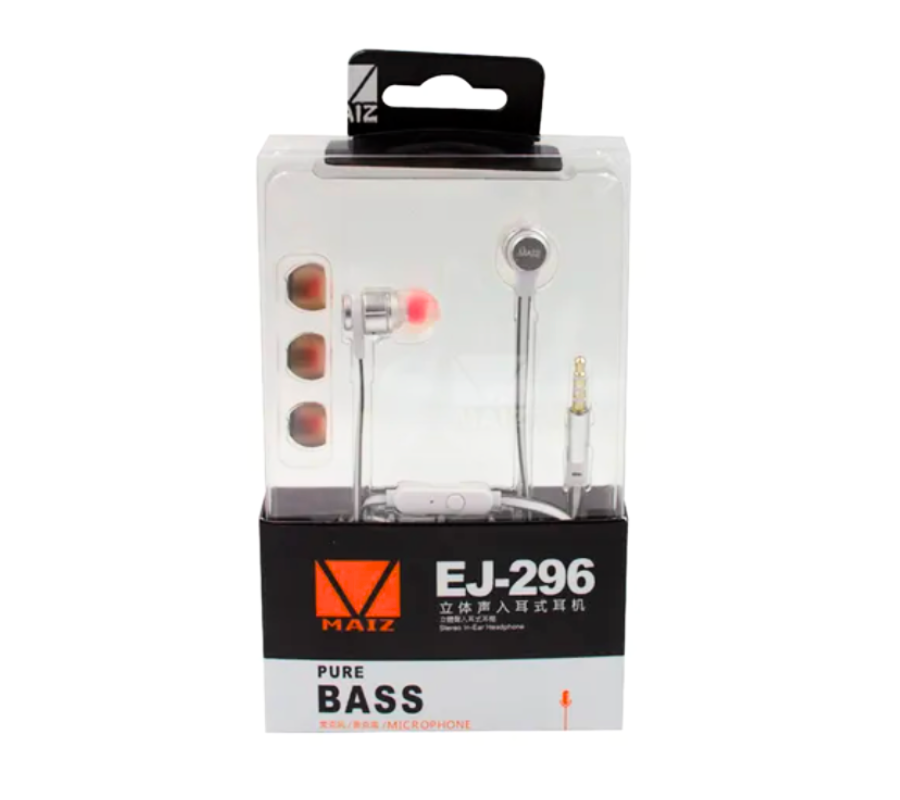 Audifonos In-Ear Alámbricos MAIZ EJ-296 PURE BASS, 3.5mm, Mic, Gris/Blanco