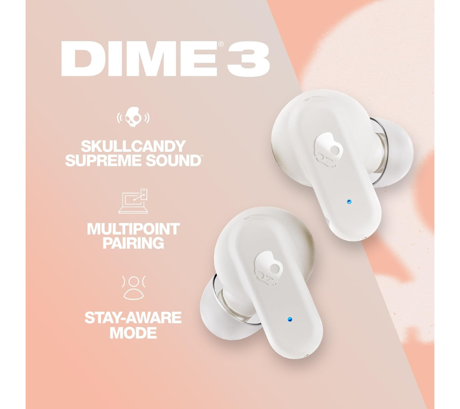 Audifonos Inalámbrico IN-Ear SKULLCANDY DIME 3 S2DCW-R951, IPX4, 20hrs, Stay Aware Mode, Blanco
