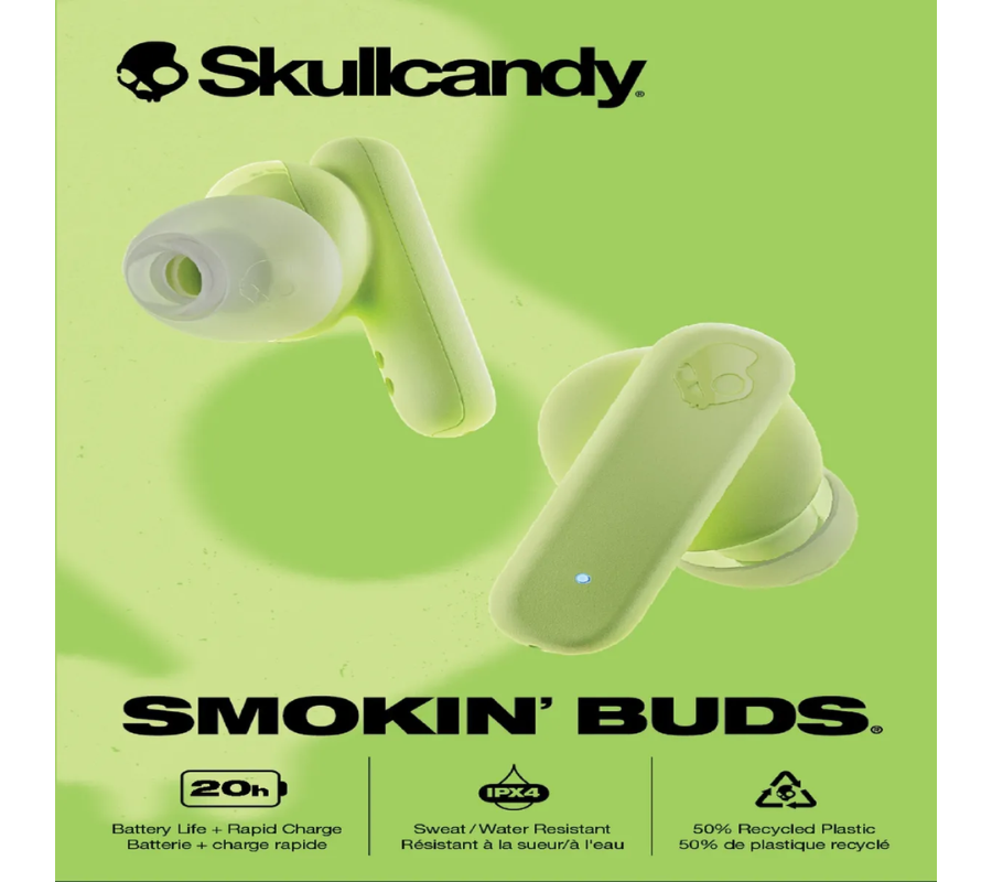 Audifonos Inalámbrico IN-Ear SKULLCANDY SMOKIN BUDS S2TAW-R954, IPX4, 20hrs, Verde