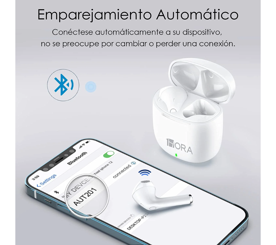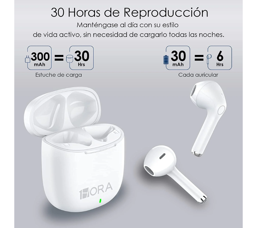 Audifonos Inalámbricos In-Ear 1HORA AUT201, Bluetooth 5.1, 5rs, Blanco