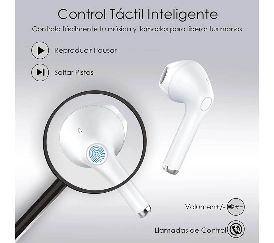 Control táctil inteligente y respuesta rápida: Con un control táctil intuitivo, puede tocar la superficie táctil del auricular bluetooth para reproducir/pausar música, saltar canciones, controlar el volumen y responder llamadas. Los auriculares vienen con un micrófono adicional para ayudar a aislar el sonido mientras se habla por teléfono.