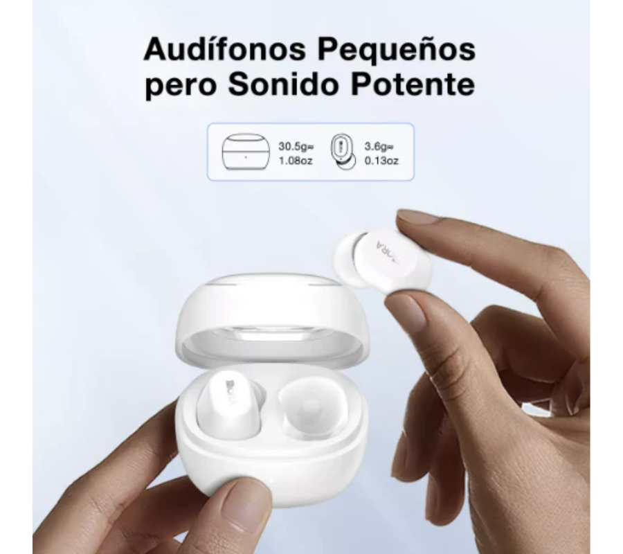Ultraligeros, ultracómodos: Las superficies y los ángulos de la parte intraauricular de los auriculares AUT208 se han pulido y refinado meticulosamente para lograr un equilibrio sin igual entre estética y comodidad, lo que los convierte en la elección perfecta para cualquiera que busque una experiencia auditiva cómoda. Además, los auriculares individuales pesan sólo 3,0 gramos, tan ligeros como una pluma y ocultos, lo que garantiza un ajuste perfecto. El diseño ergonómico no sólo es cómodo, sino que también es seguro sin sobresalir de la oreja, lo que los convierte en la opción ideal para cualquiera que busque mantenerse activo con su música, ya sea durante un entrenamiento, una sesión de fitness o incluso una simple sesión casual en el gimnasio.