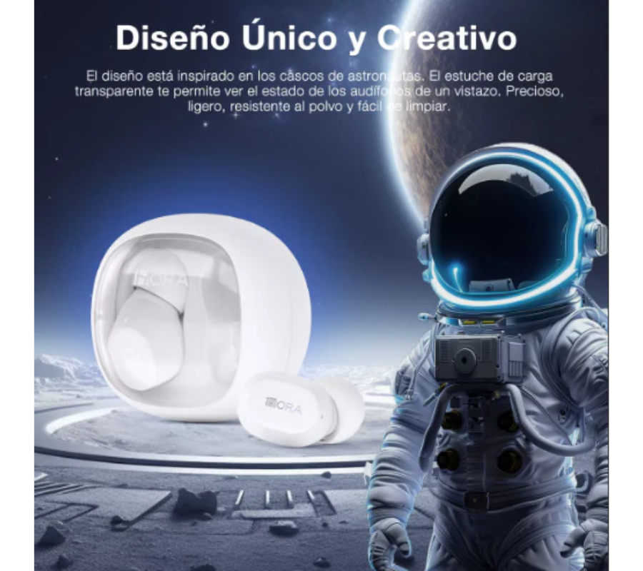 Cápsula Transparente de Diseño Exclusivo: El AUT208 es un casco único y sorprendente que no dejará indiferente a nadie. Su diseño atrevido y creativo se inspira en los cascos de astronauta y no pasará desapercibido. La cubierta de los auriculares está hecha de material ABS transparente, lo que es genial porque puedes ver el estado de tus auriculares de un vistazo sin tener que abrir el estuche de carga. La tecnología al servicio de la humanidad, este auricular es un homenaje a los grandes astronautas.