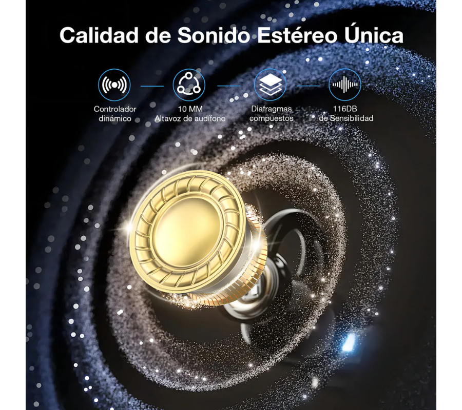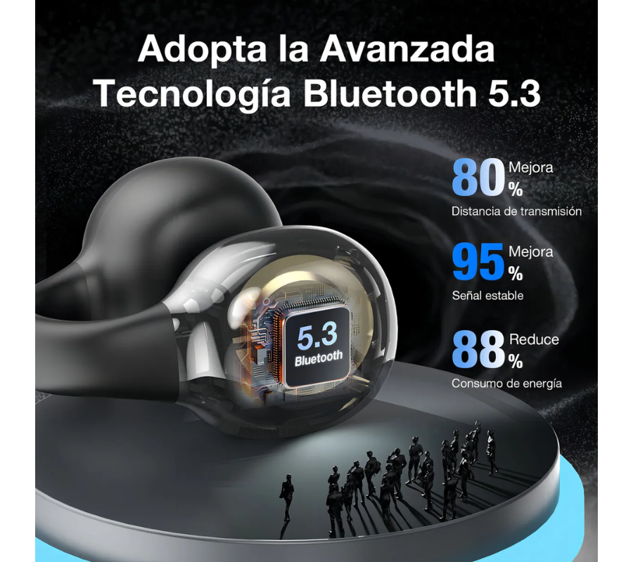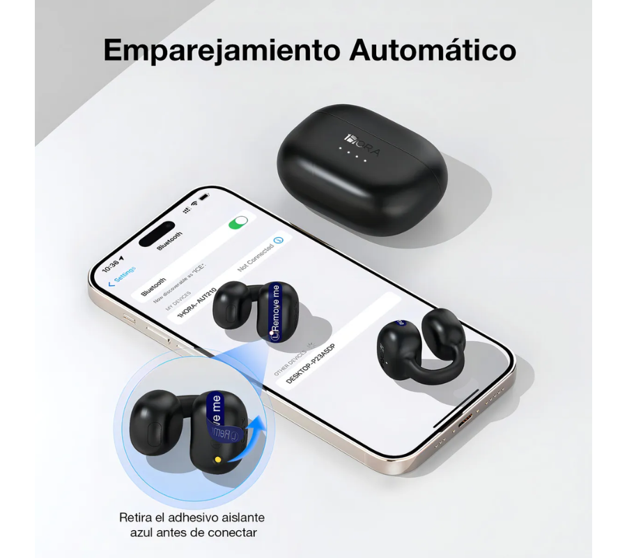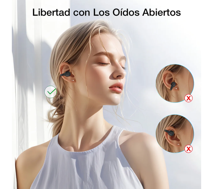 Diseño innovador, experiencia inmersiva y privada Con una estructura única de clip para la oreja, los audífonos se ajustan perfectamente al contorno de la oreja, reduciendo la fuga de sonido y ofreciendo una experiencia de sonido clara y envolvente, sin afectar el entorno circundante.