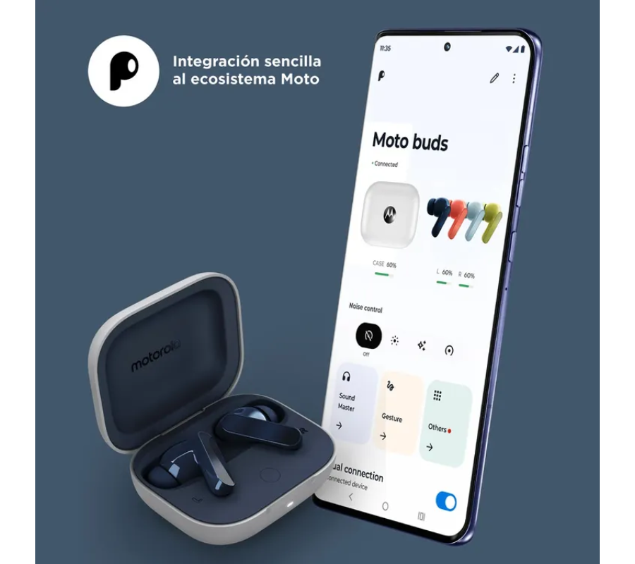 Presentamos los audífonos moto buds con un gran controlador dinámico y audio de alta resolución, con los cuales podrás vivir una experiencia envolvente con tu música y películas favoritas, gracias al audio equilibrado de alta calidad y graves mejorados. Además, desconéctate del mundo que te rodea, o bien mantente al tanto de lo que está sucediendo a tus alrededores con la función cancelación dinámica de ruido. Estos Moto Buds son fáciles de ajustar, personalizar y controlar para que obtengas una experiencia superior.