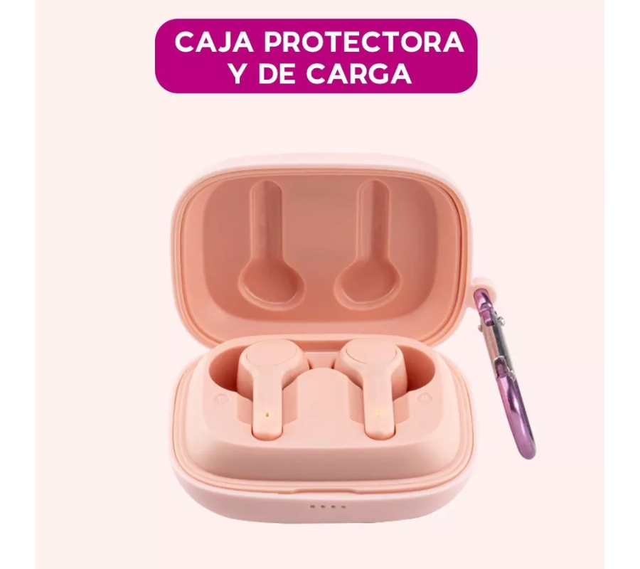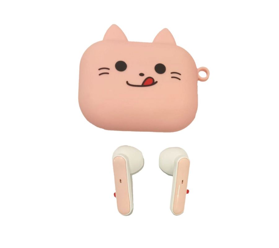 Audifonos Inalámbricos MAIZ BEJ-074 Case Gato Rectangular Rosa, Auriculares Blanco/Rosa