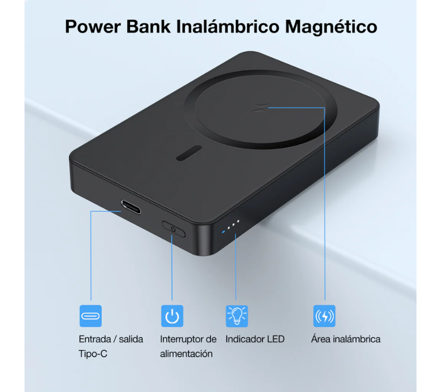 1Hora Batería Portátil Magnético Inalámbrico Powerbank Con cable USB-C 5000mAh GAR276 Power Bank