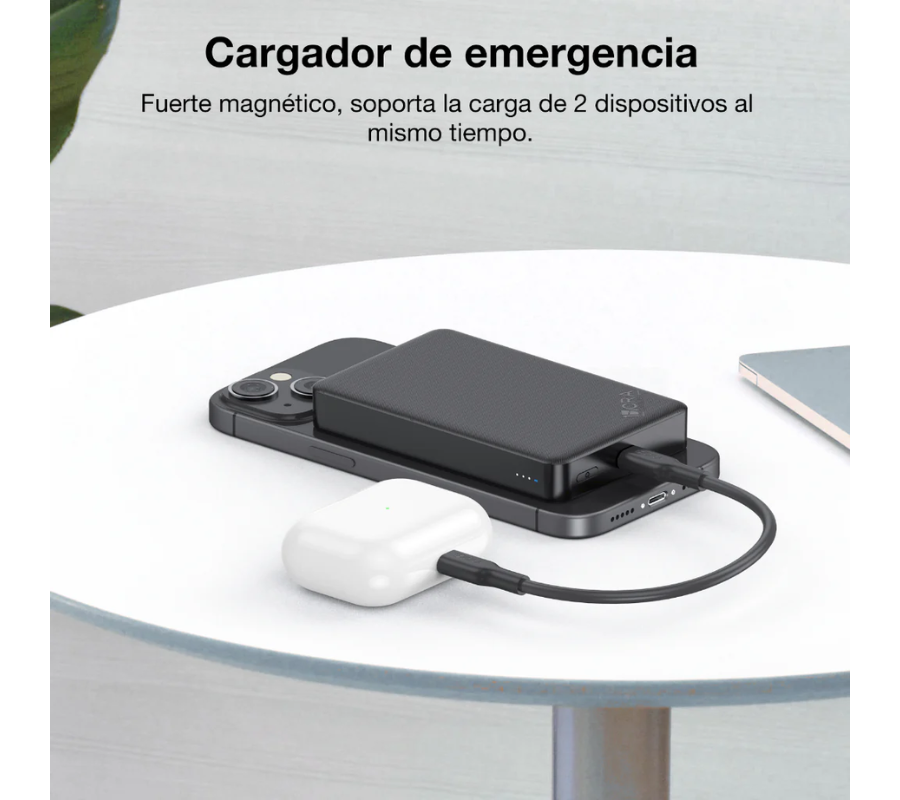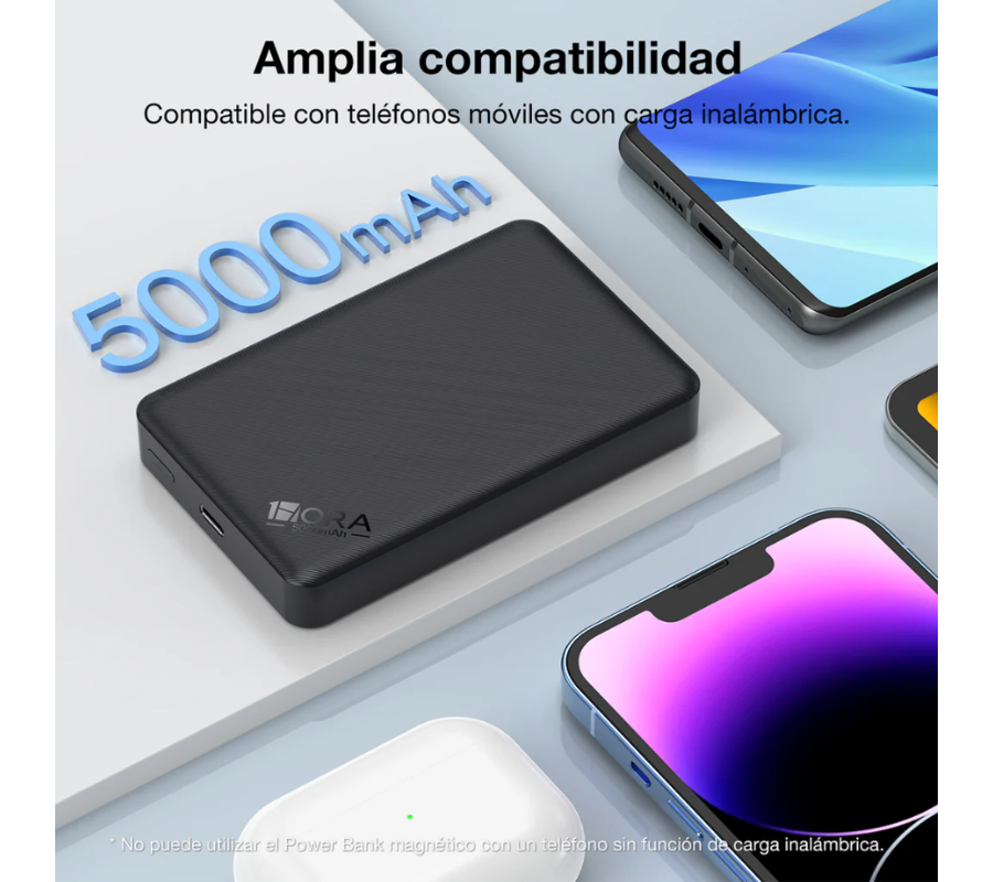Batería Portátil Magnetico 1HORA GAR276, PowerBank 5000mAh, 10W, Magsafe, Negro