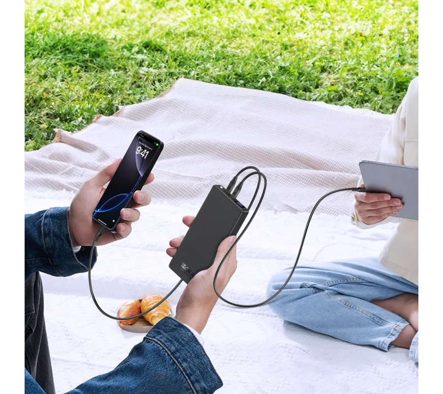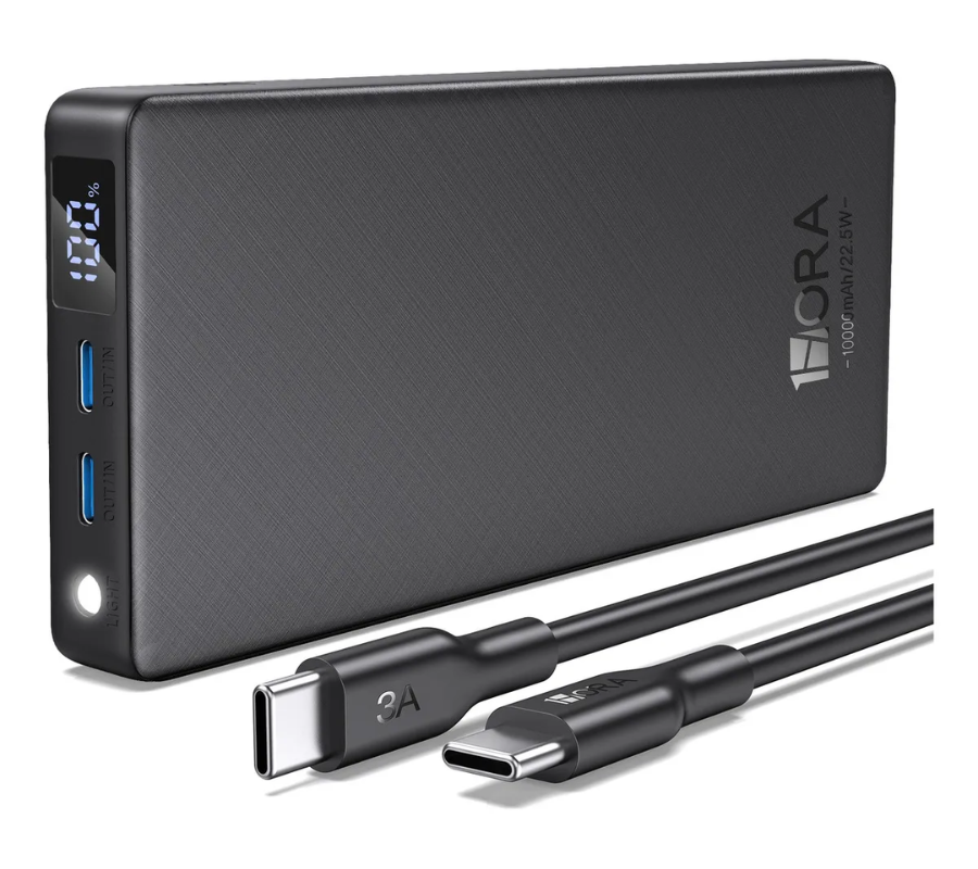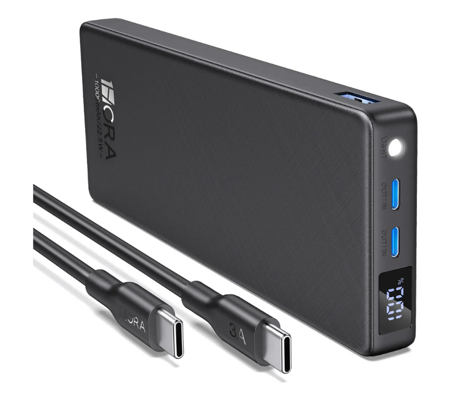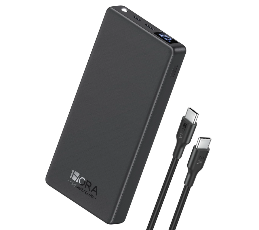 Batería Portatil 1HORA GAR264 3 PUERTOS: 2 USB-C, 1 USB-A 22.5W Power Bank, Negro