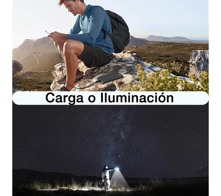 Ilumina la oscuridad con un solo toque Este powerbank no solo carga, también te ofrece una fuente de luz en situaciones de emergencia. Con una linterna LED de alta potencia incorporada, perfecta para encontrar objetos en la oscuridad, emergencias por apagones o camping al aire libre. Con un solo toque, ilumina tu camino en todo momento.