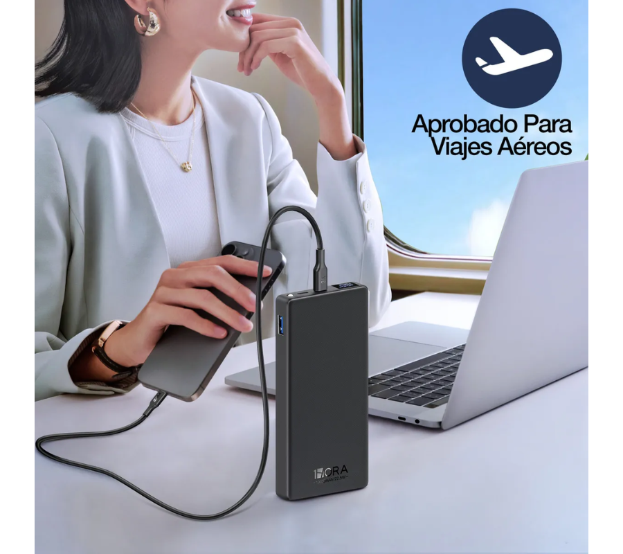 Batería Portátil 10000mAh 1hora GAR264 Carga Rapida 22.5W color negro
