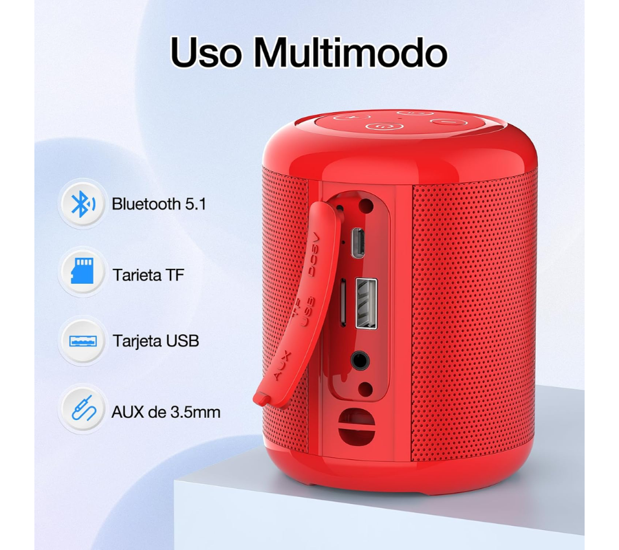 - Empareja los mini bocina bluetooth con cualquier android, ios, portátil, tableta, televisor inteligente o más dispositivos. Los bocina Bluetooth 5.1 con altavoces incorporados pueden responder fácilmente al teléfono. Mini Bocina Bluetooth - Súper pequeño, tamaño de mano 72.7*96.15mm, peso 286g.