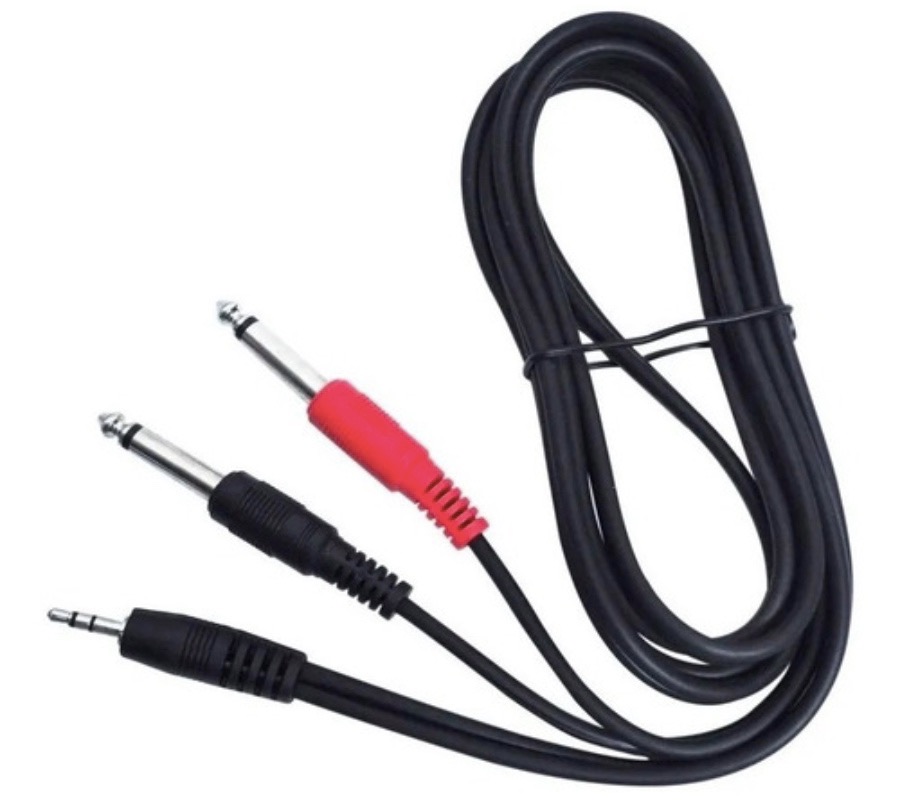 Cable 2 Plugs 6.3mm a 1 Plug 3.5mm FUSSION AC-3006, 1.8M, Negro