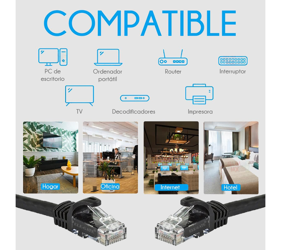 - Compatibilidad universal: Este cable es compatible con dispositivos equipados con puertos RJ45, como computadoras, laptops, routers, impresoras, consolas de juegos y más.
