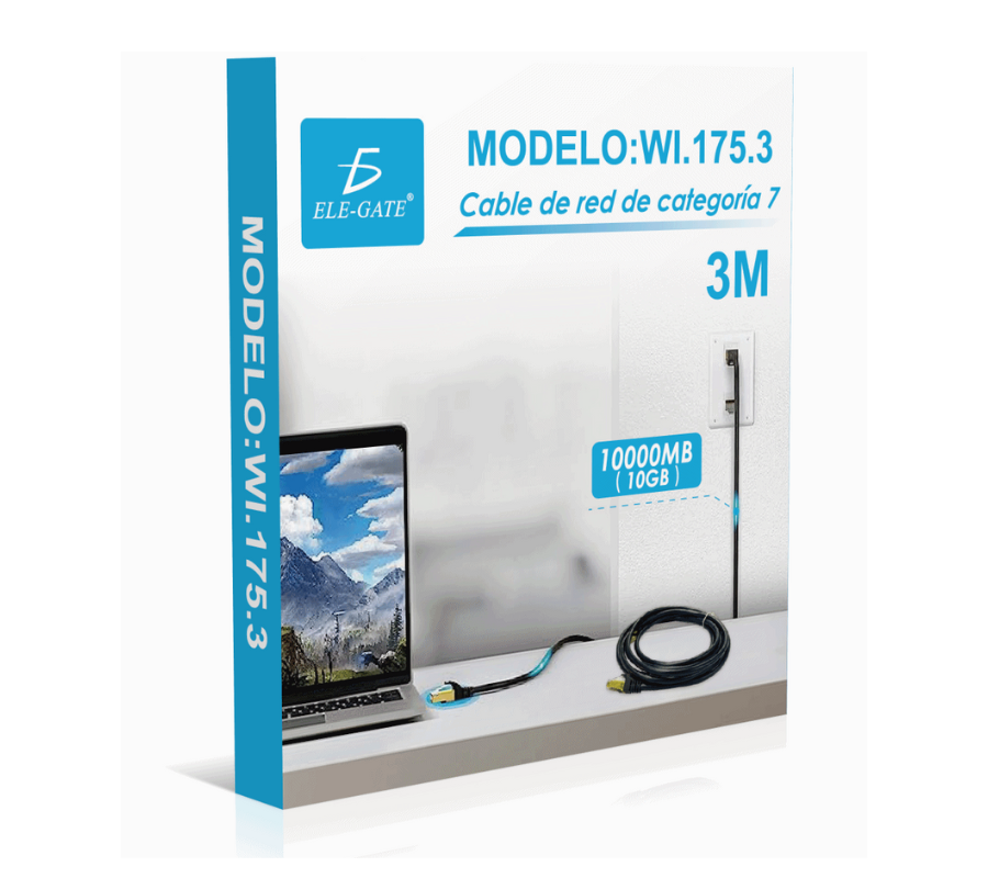 Cable de Red Categría 7 ELE-GATE WI.175.3, Cable Ethernet, 3M, 10000MB, Negro
