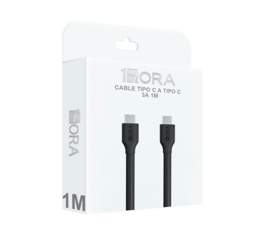 Cable Tipo C a Tipo C 1HORA CAB252, 1M, 3A, Negro