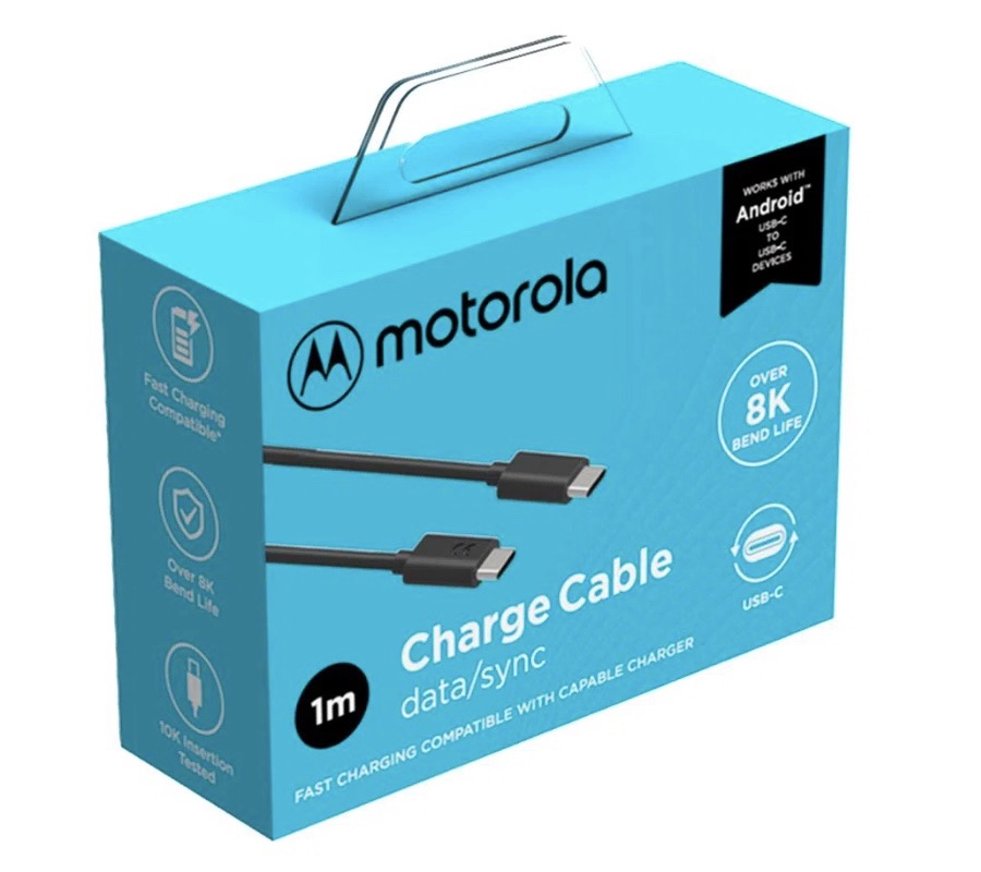Cable Tipo C Motorola de carga mas rápida de hasta 3A y velocidad de transferencia de datos hasta 480Mbps.
