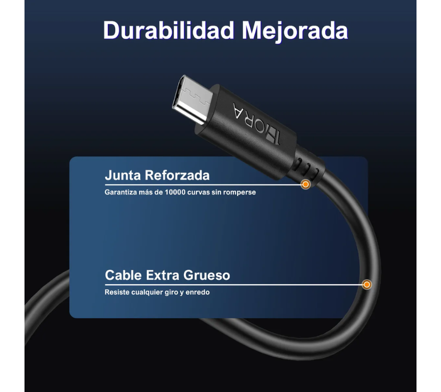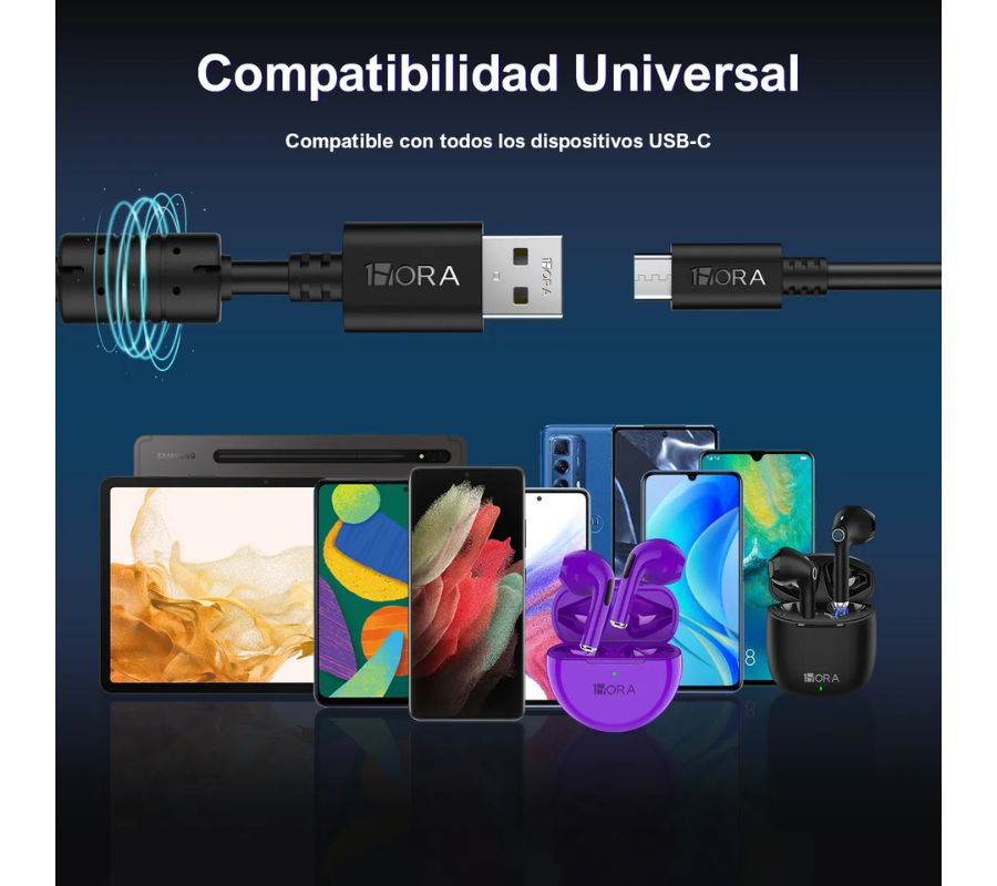 Cable Tipo C de carga Rapida 1.5m Color Negro – Marca 1Hora (Modelo: CAB150). Amplia compatibilidad, duradero y la mejor relación calidad-precio.