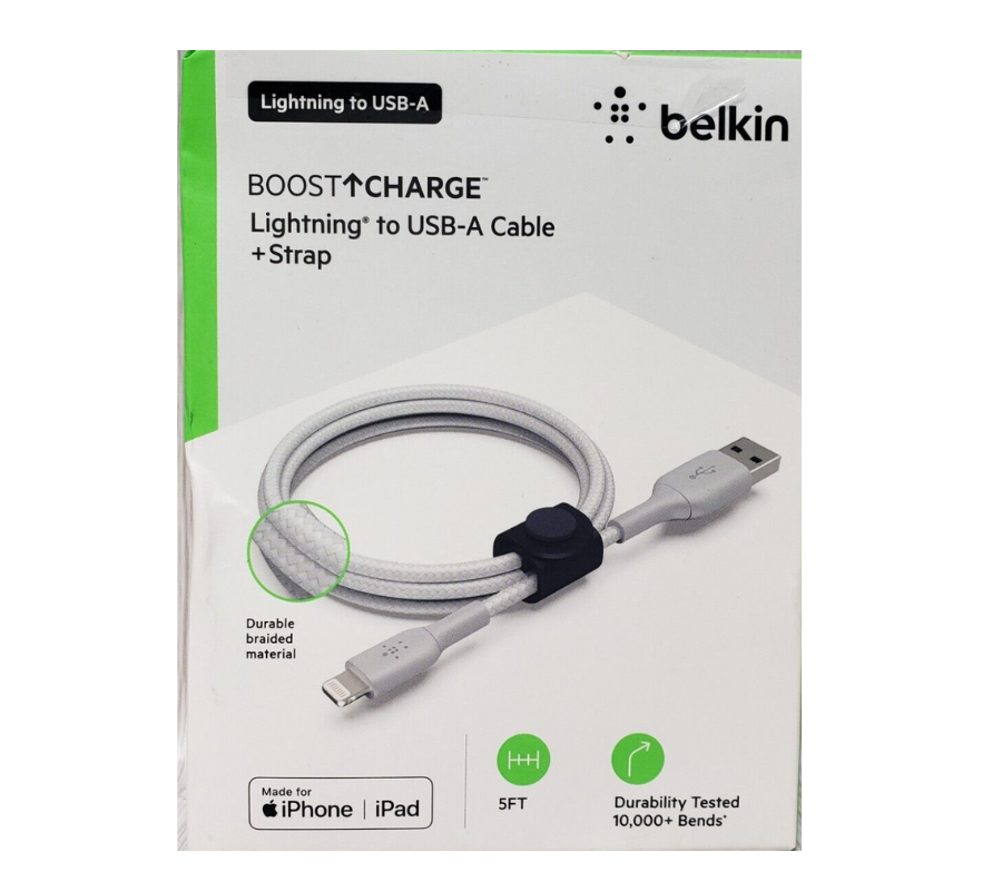 Conociendo el cable + correa BOOST ↑ CHARGE™ Lightning® a USB-A de Belkin, F8J279 El cable + correa BOOST ↑CHARGE™ Lightning® a USB-A de Belkin, F8J279 es un cable confiable y de alta calidad que admite una carga de hasta 12 W mientras transfiere datos de forma segura a su iPhone® o iPad®.