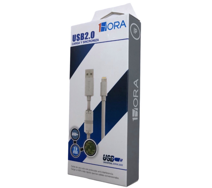 Cable USB a Lightning Carga Rápida 1HORA CAB075-B, 1.5M, Blanco