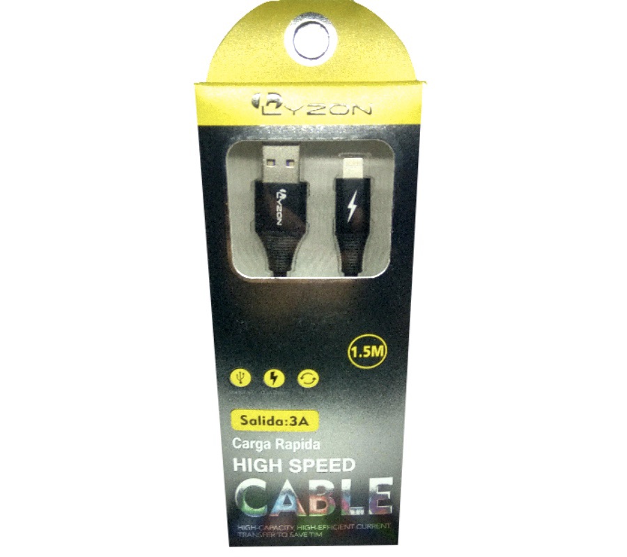 Cable USB a Lightning Carga Rápida LYZON CBI5A5 3A, Reforzado 1.5M, Negro