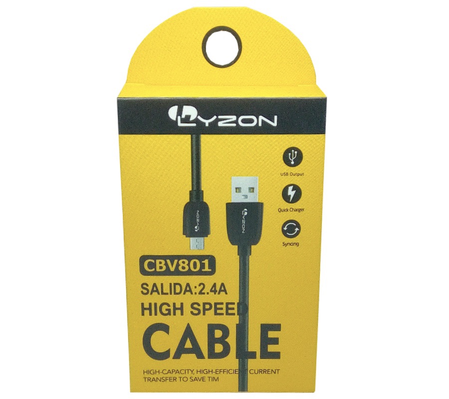 Cable USB a Micro USB LYZON CBV801 2.4A, 1M Negro