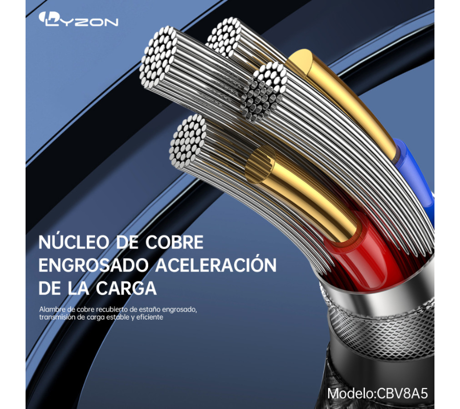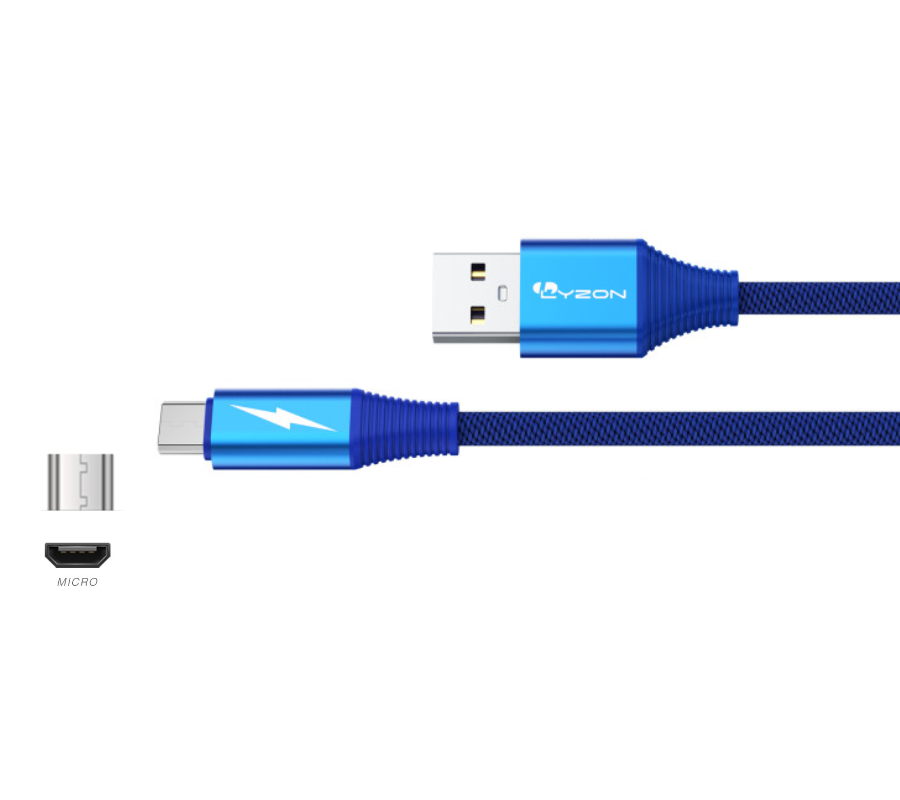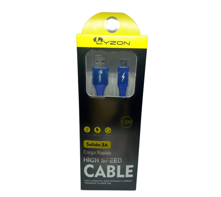Cable USB a Micro USB V8 Carga Rápida LYZON CBV8A5 Reforzado 3A, 1.5M, Azul