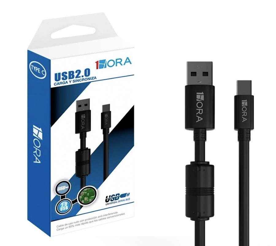 Cable USB a Tipo C 1HORA CAB150, USB 2.0, 1.5M Negro