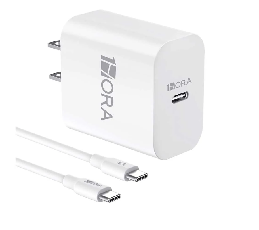 Cargador de Pared 2 en 1 1HORA GAR153, Cubo 1 pto: USB C, 20W, 3.A, Cable USB-C a USB-C, Blanco